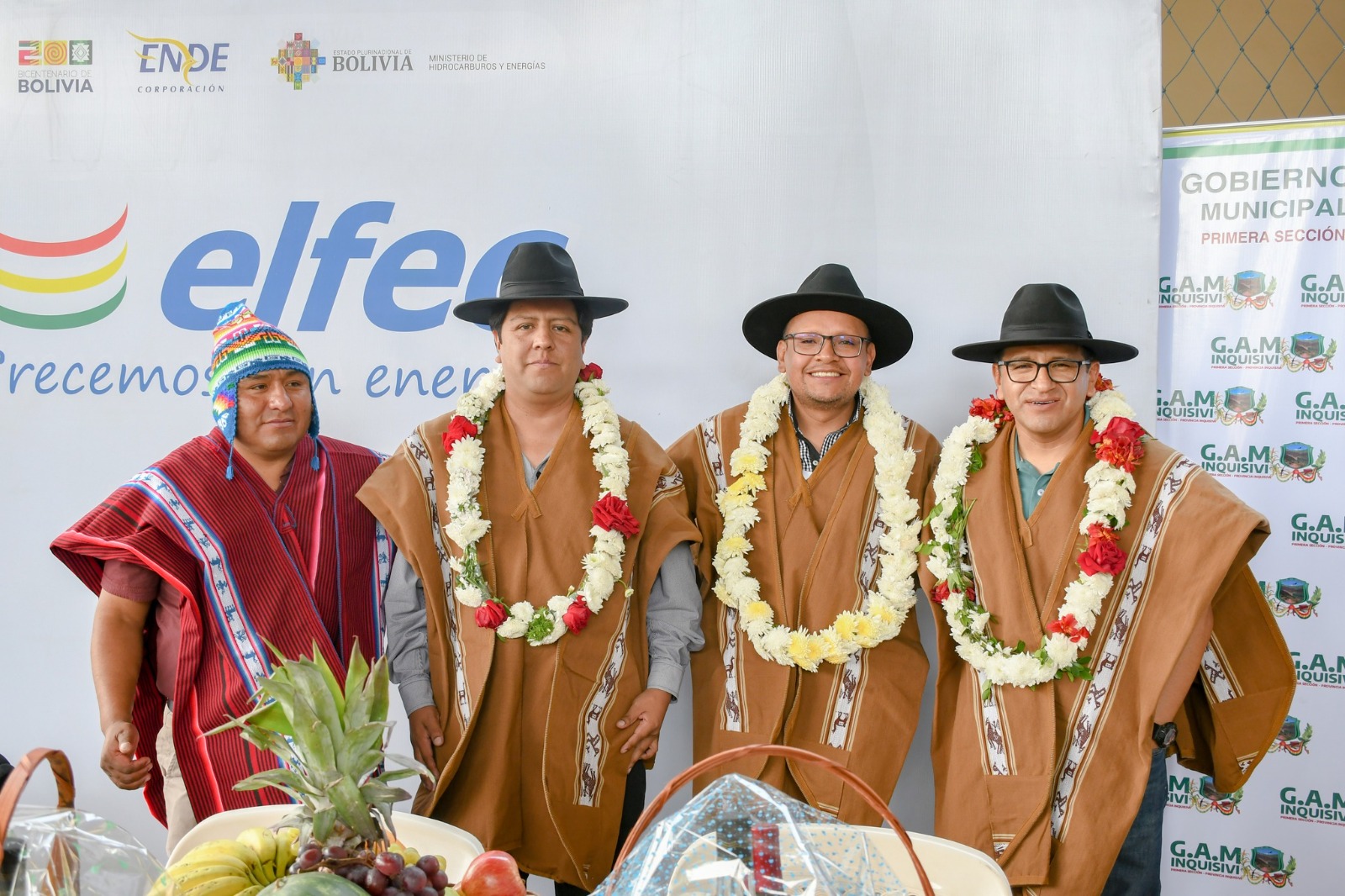 En esta emotiva jornada también estuvieron presentes autoridades locales, entre ellas el Prof. Johnny Condori Garnica, Alcalde del Gobierno Autónomo Municipal de Inquisivi, y el Ing. Ever Callejas Chávez, Secretario General del GAM Inquisivi, además de representantes comunarios de la región que serán los beneficiarios directos de esta obra.